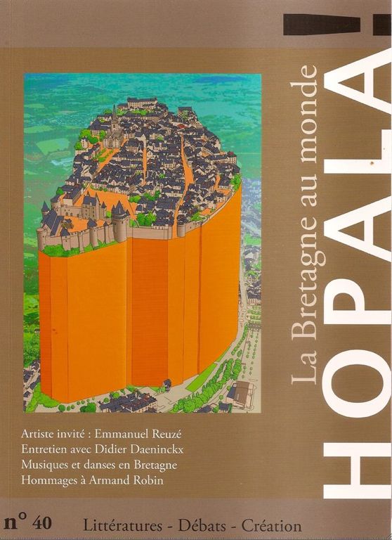 La revue Hopala ! — « La Bretagne au monde » — Débats, littérature, création, accueille en son quarantième numéro, le lecteur avec une surprenante « Élévation de Vitré » d’Emmanuel Reuzé, et c’est un autre tirage numérique, une « Élévation de Royan » qui fait la quatrième. L’artiste a adapté pour la bande dessinée deux récits de Didier Daeninckx : Cannibale (1998) et Le Retour d’Ataï (2012). Occasion de revenir sur son talent « polymorphe » (entretien non-sensique et sérieux avec Pascal Rannou, et présentation du même), et d’une conversation avec l’auteur de La Complainte oubliée [29].